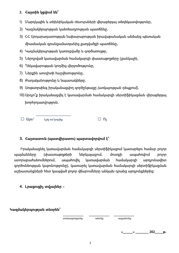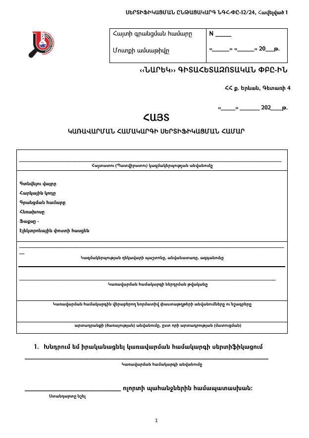Կառավարման համակարգերի սերտիֆիկացման մարմին դիմելու հայտը