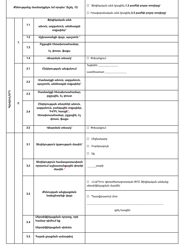 Եթե Դուք ցանկանում եք մասնացել մեր ընկերության կողմից իրականացվող քննություններին՝ Ձեզ հետաքրքրող ոլորտում, ապա խնդրում ենք լրացնել հետևյալ հայտի ձևը և ուղարկել այն