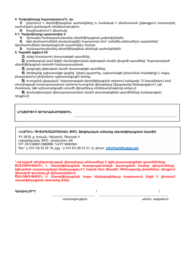 info@certification.am էլ. փոստի հասցեով